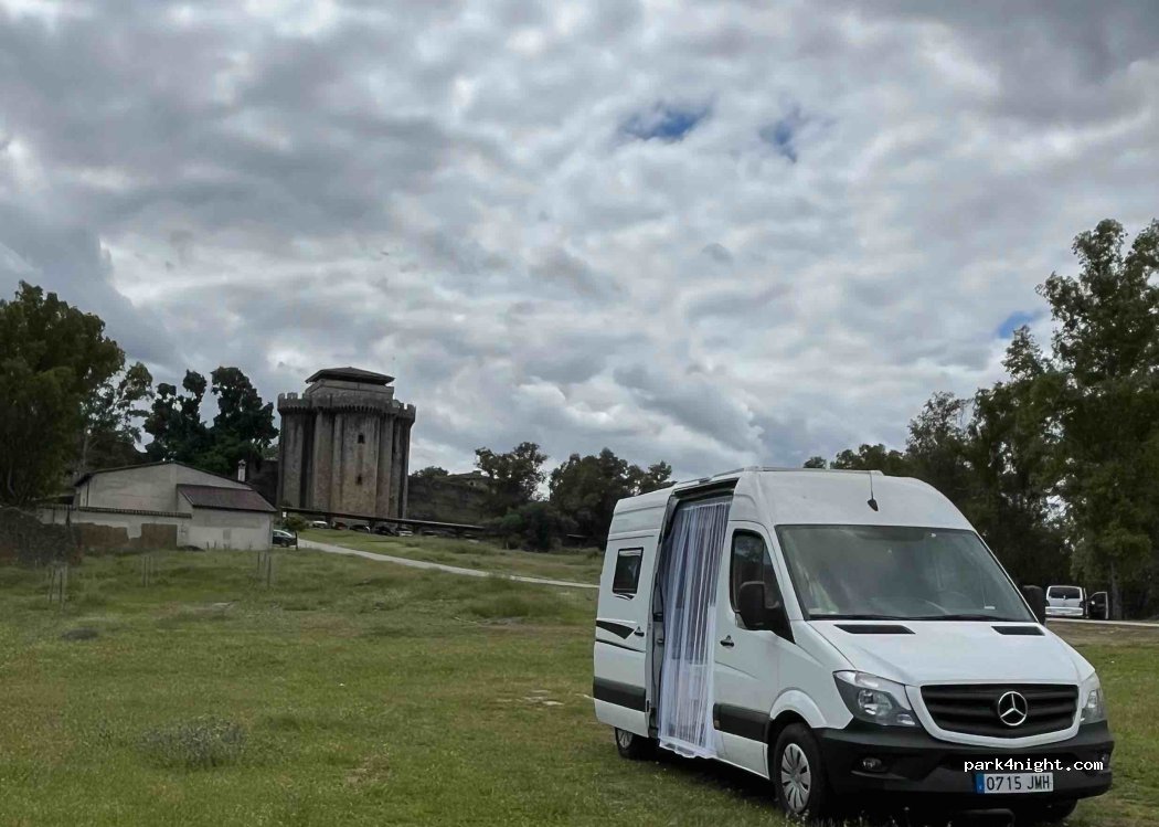 Efectivamente noche estrellada a pie del Castillo, que es lo que no se puede visitar, castillo y muralla, el resto sin problemas. siguiendo indicaciones de uno de los trabajadores de Turismo de Granadilla, nos quedamos a pasar la noche. también se quedó una AC, hay contenedores, columpios y una pasarela al embalse. Recele un poco pero fue un acierto, ni un ruido, el pueblo abre a las 10