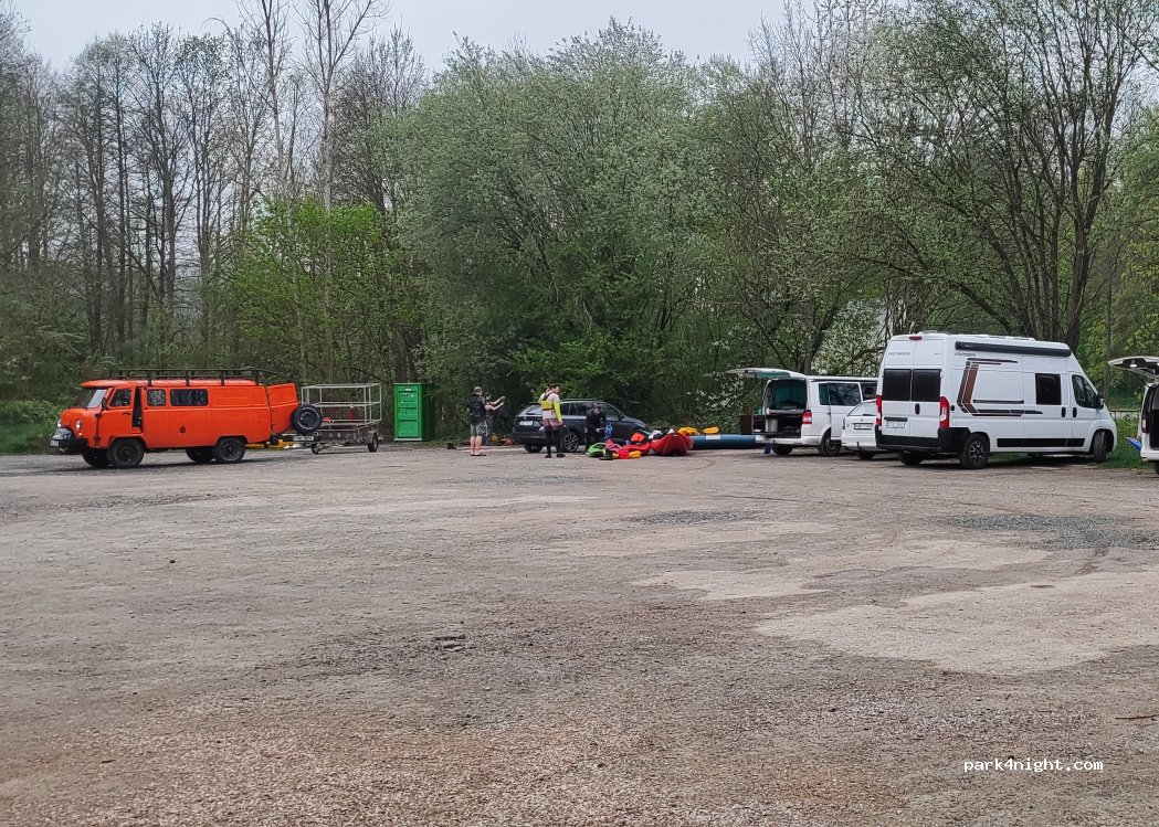 A quiet parking place for overnight stay. We arrived very late and the parking place was empty (late December). That was our first sleepover in our converted camper and we felt safe and sound. Nothing luxurious, just a gravel plot to park on and a WC booth on the side. Recommended!