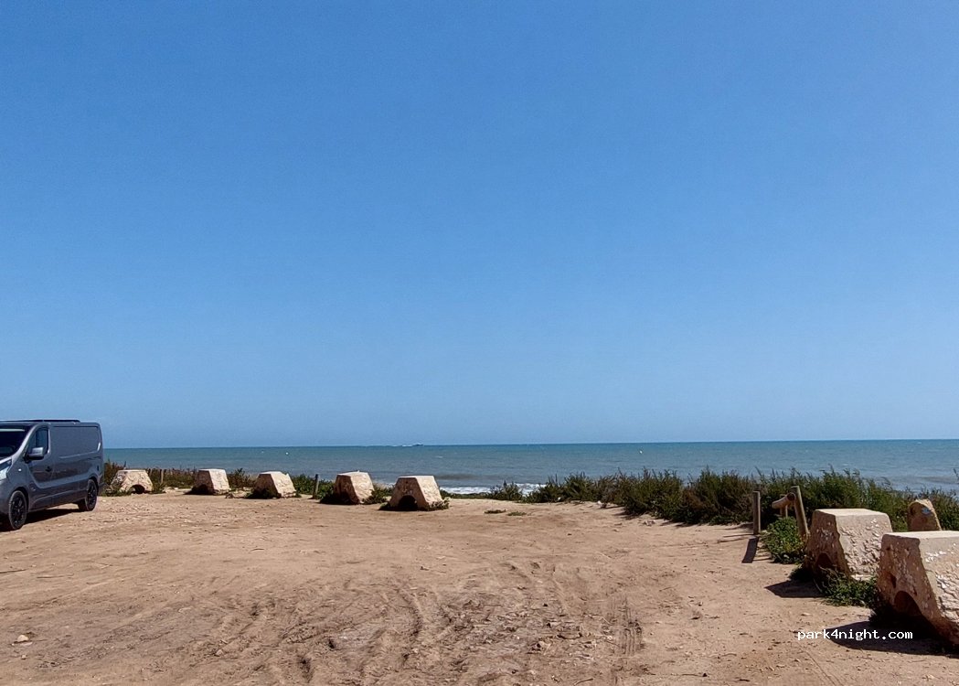 We spend one night here with lot of vans and AC and we no problems, few police car passed but no problems either them. Please, Don’t take one place for you, everybody wants to be in the beach.