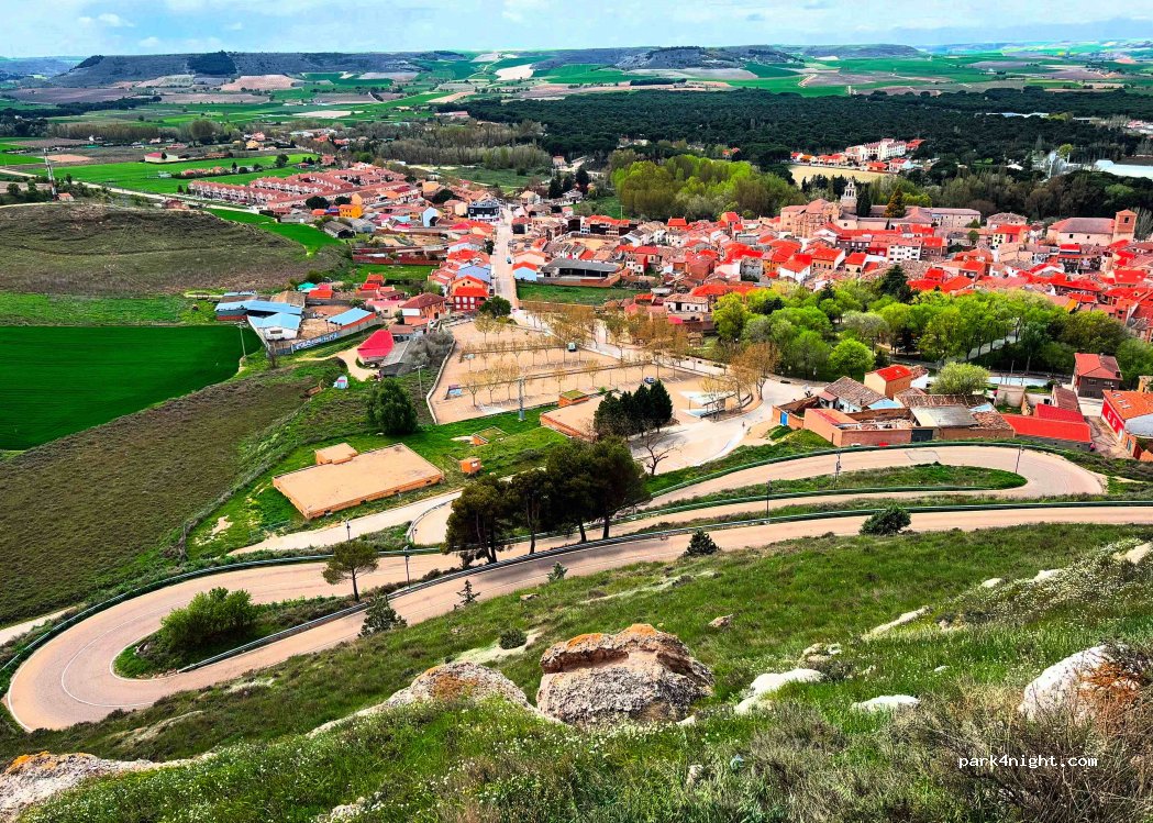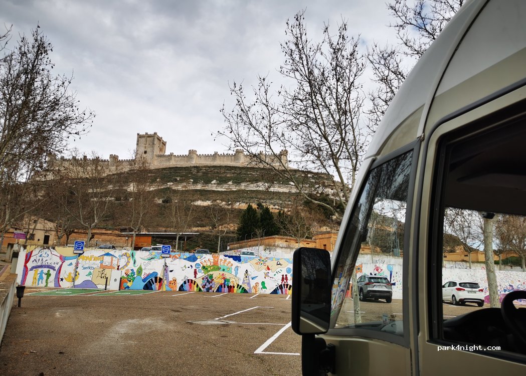 Amplio y nivelado. Gratuito. Próximo y adecuado para visitar Peñafiel y el Castillo. Hoy no hay bus al castillo (confirmar por teléfono): una vez arriba, te indican dónde aparcar para no entorpecer el paso de camiones (ahora hay obras). Noche totalmente tranquila. Comentario de primera mano.