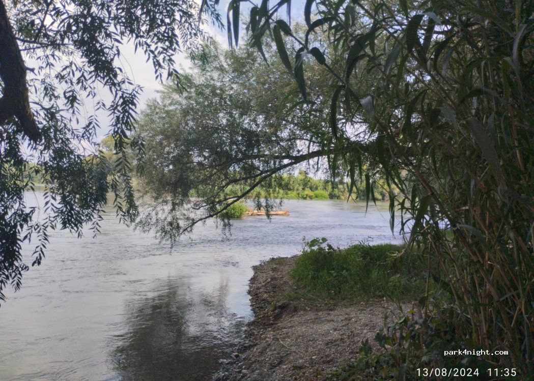 echt een fantastische plek strak aan het water, we hadden een hoge waterstand maar was geen probleem met onze hymer. mlt 570. het is geen vlakke plaats ,oprit en standplaats grof grind.