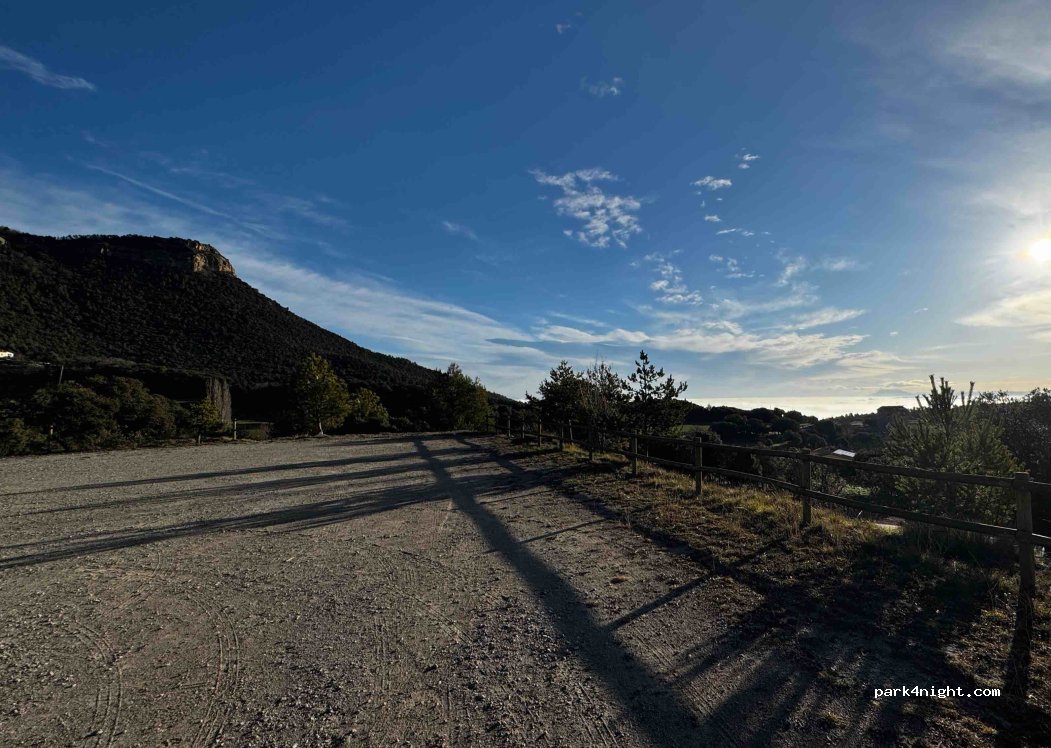 Large parking of the multipurpose center and sports facilities of L'Espunyola. Wide gravel parking, very accessible.