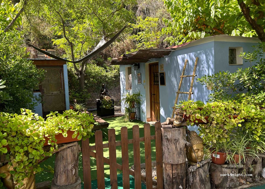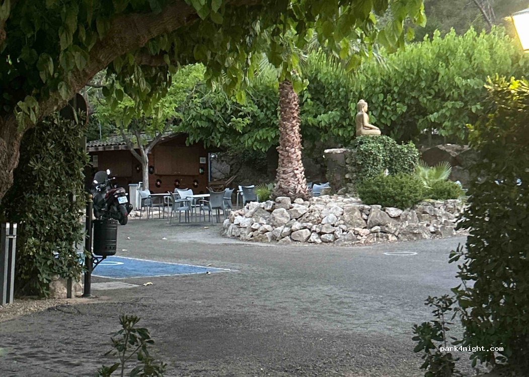 Strange place. Mostly longterm residents. About 6 sites for tourers scattered ad hoc under low trees, narrow turns and budha statues. We're 6 metres and really struggled to park in our pitch. Toilet block always seemed dirty and needs repairs. Water was always hot at least. Local bar on site was nice. Staff (Camilo & barman) were lovely. Enter via Cam. San Antonio to avoid steep access road.