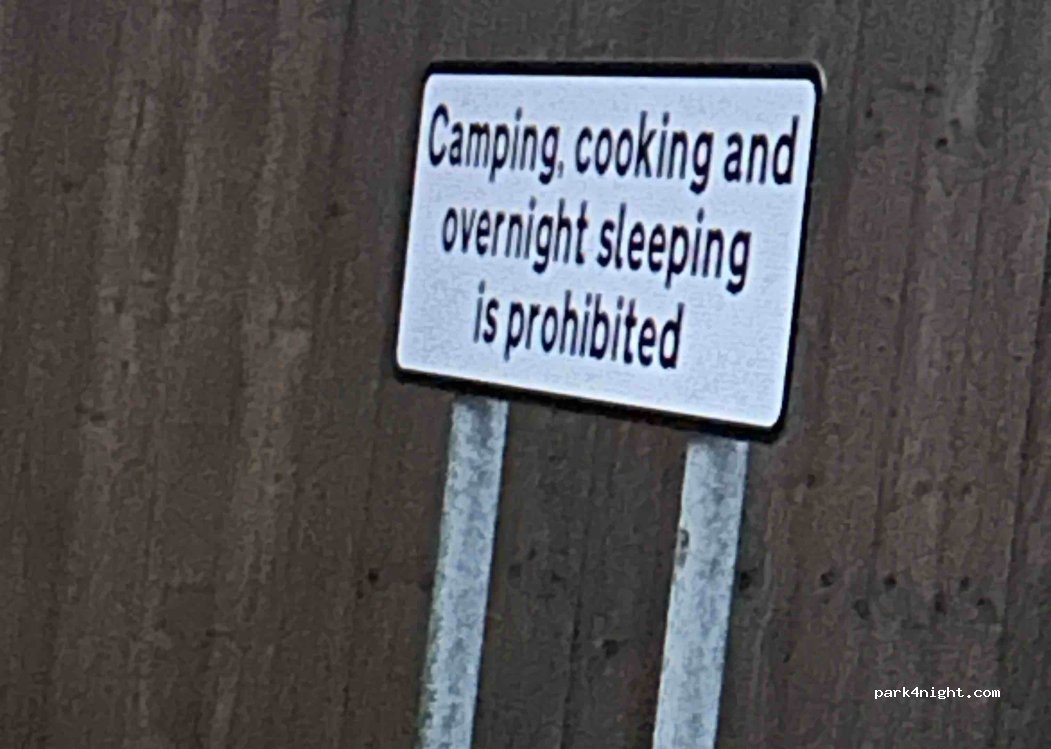 New signs prohibiting camping, cooking and sleeping. Day parking only.