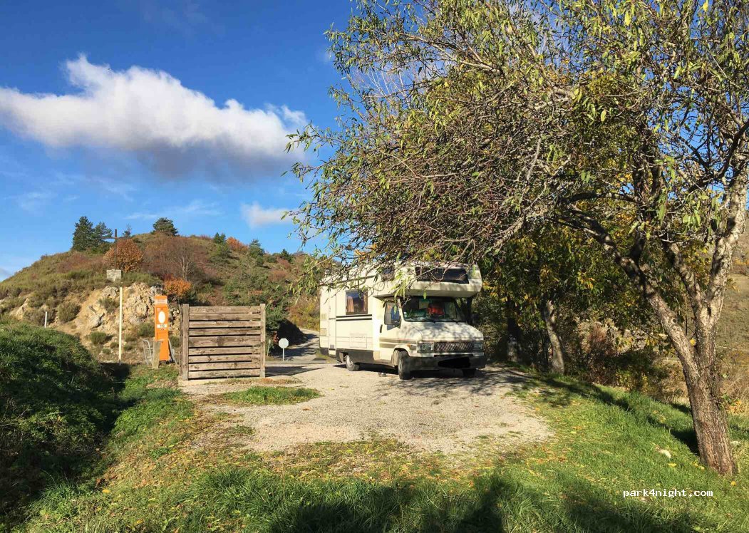 Petit parking sympa pour une nuit. Jolie vue sur la vallée, table de pique-nique, poubelle, borne sos... en bord de route calme.