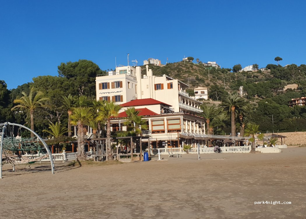 Public parking next to the beach and at the beginning of the green route that runs from Benicásim to Oropesa. Ideal for an overnight stay (at least out of peak season), there are no prohibition signs and there was no vehicle when arriving in the late evening. It has some slope. Little night traffic and the sea a bit noisy if it is rough, you can feel the humidity but the views when you wake up are well worth it. Suited for vans or small motorhomes.