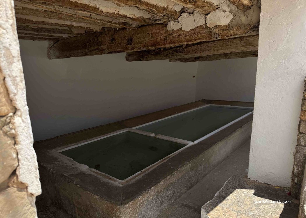 Town square in Corcolilla, village of Alpuente. At night you can spend the night, it is very quiet and well leveled. It is next to a bar, in the morning there is more movement. Fountain and containers in the same square. Moorish oven next to the square although they open late.