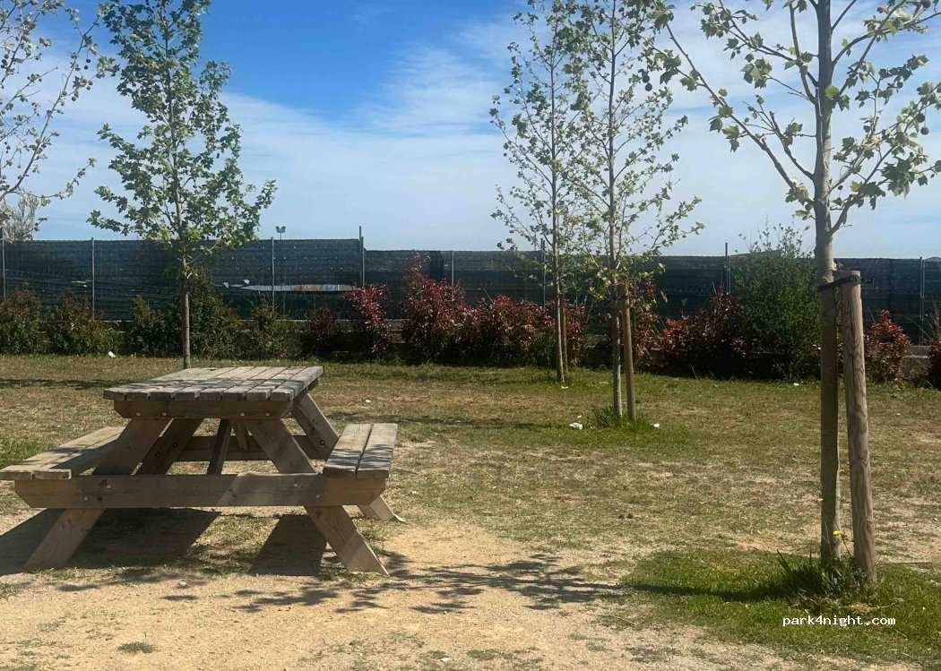 Hem parat per visitar la localitat, en el carrer de davant. Sembla tot molt tranquil i segur. El parking és de terra, prou bó per passar la nit.