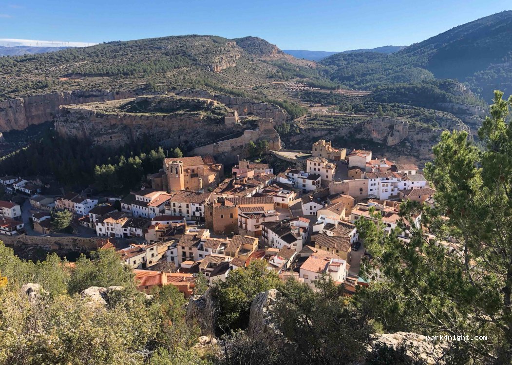 Une vue extraordinaire effectivement et un village tout aussi extraordinaire avec son chateau (en refection). Supérette bien achalandée, boulangerie, boucherie. Il faut faire le détour. Avons dormi sur terrain devant la nouvelle maison de retraite au dessus de la route passant dans le village. Pas de bruit. Il manque une aire de Cc ou des services domage car ce site mérite de s'y attarder.