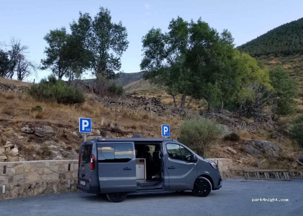Las pozas son una pasada.... el parking es para furgos, las autocaravanas no caben allí... antes de llegar hay varios huecos donde aparcar, eso si... un poco inclinados.