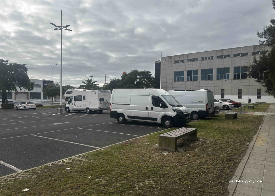 Es un aparcamiento que está bien para ir al supermercado, pero allí no se puede dormir pues está pegado a la carretera y al lado de una calle conflictiva de la capital,hay varias autocaravanas de residentes aparcadas. No es seguro pernoctar allí.
