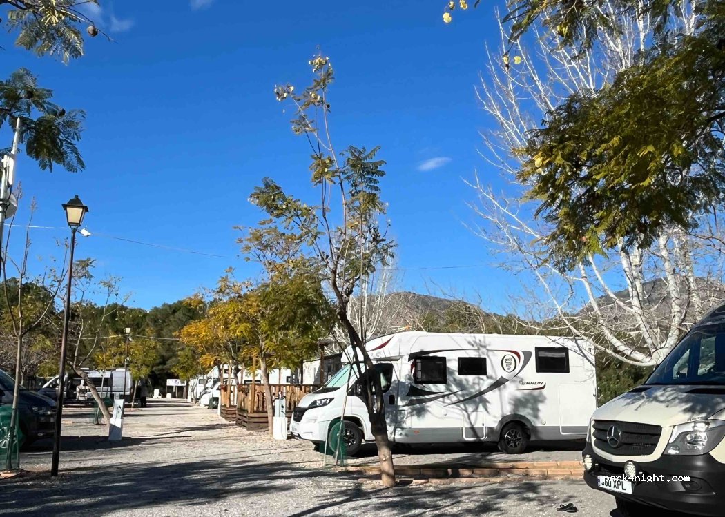Camping para poder aparcar en los exteriores que disponen de aparcamientos amplios por 5€ al día , si quieres pernoctar sería dentro del camping por 22€ ideal para visitar las fuentes de algar.