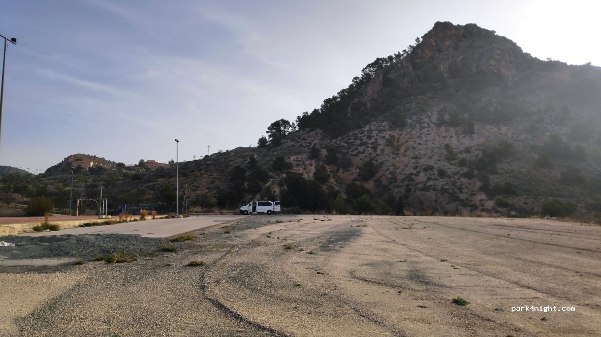 Parking abandonné. Cependant l'endroit est calme et éclairé la nuit. IMPORTANT : si vous tenez absolument à aller à cet endroit passez par la route sud, par Fortuna. La route nord qui vient de Fuente Blanca est très abîmée et très étroite surtout à l'approche du village. Sur plusieurs tronçons de quelques centaines de mètres impossible de croiser avec un 7,40m
