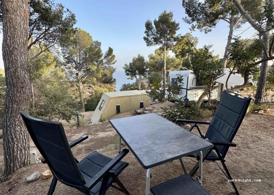 Wundervolle Aussicht, Recht teuer wenn man nur wenige Nächte am Stück nimmt (38€/Nacht, 2 Personen) in der Nebensaison. Hier wird meist noch "normal" gecamped mit Camper oder Wohnmobil mit Vorzelt/Markise. Zu den 3 Stränden ( 1 FKK Strand) kann man eigentlich nur sagen dass sich nur der "Platja de Llorell" lohnt. Die anderen sind total heruntergekommen und stinken. Alles in allem okay.