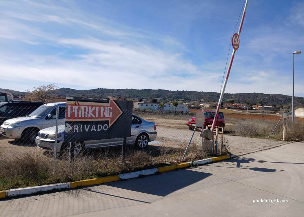 llegamos por la noche ,aparcamos sin problema, varios autobuses y caravanas ya aparcadas cuando llegamos. por la mañana repostamos para agradecer el uso de este parking, que como se indica, es privado. muy cómodo para visitar Cuenca.
