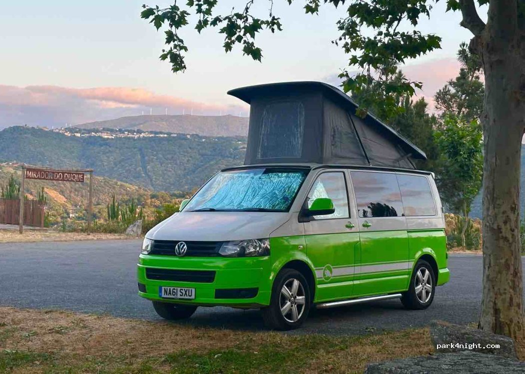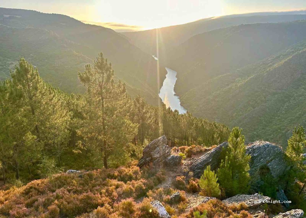 Unlike other reviewers, we choose to stay in the smaller lower parking lot right next to the mirador - we had it to ourselves from ~10pm until we left at 9am. Glorious viewpoint but a slight litter problem and nearest toilet is a 20 min drive. More amazing for sunrise but sunset was pretty cool, too! You can see boats on the river down below and Castro Caldelas across the valley. V quiet night.