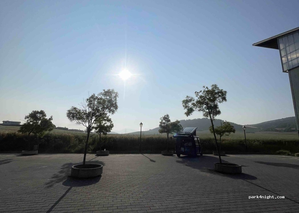 Proche de Pampelona, pratique si vous souhaitez sortir de la ville sans trop vous en éloigner... La nuit a été calme (1 autre van à côté de nous). Aucun service à proximité.