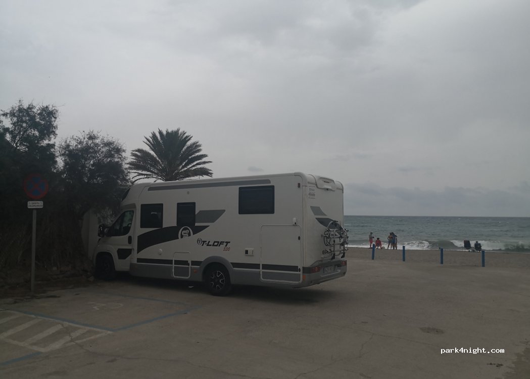 El mejor aparcamiento en primera línea de playa! Muy silencioso y oscuro para ver el cielo estrellado. Caben dos autocaravanas o tres bien puestas.