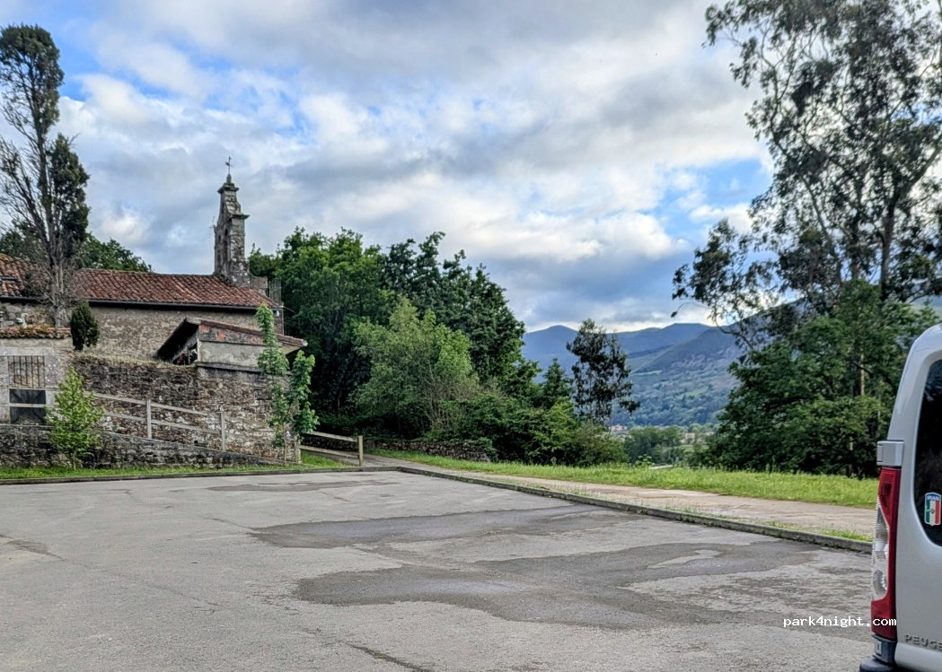 Compartimos espacio con otras dos camper y aún había bastante sitio. Muy agradable y ni un solo ruido. Es un aparcamiento que está al lado de una iglesia con cementerio. Para subir, si sigues la señal de parking, la cuesta es bastante empinada y estrecha, pero pegándose caben dos vehículos sin problema. Muy recomendable.