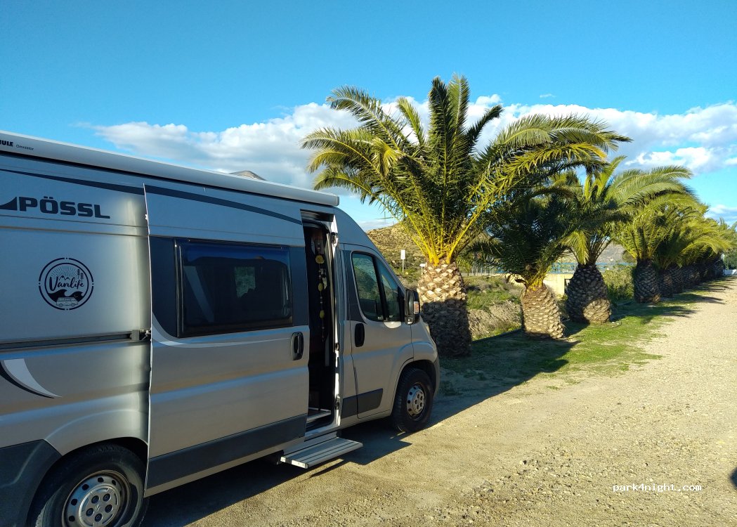 Ook mogelijk voor grotere campers, alhoewel de toegangsweg vanaf Nijar vele km erg smal is.