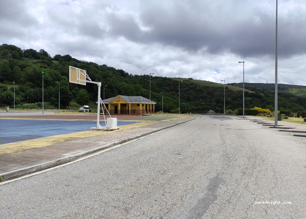 Siempre solía subir al pueblo de Cebreiro para estar más cerca de la nieve, pero esta zona a pesar de estar cerca de la carretera y autovía, es bastante tranquila, con zona ajardinada para pasear a los perros y baños abiertos 24h. Los baños dan pena como están de sucios y con pintadas, a las duchas les falta la manguera. Hay una tienda con productos típicos cerca y un supermercado más abajo.