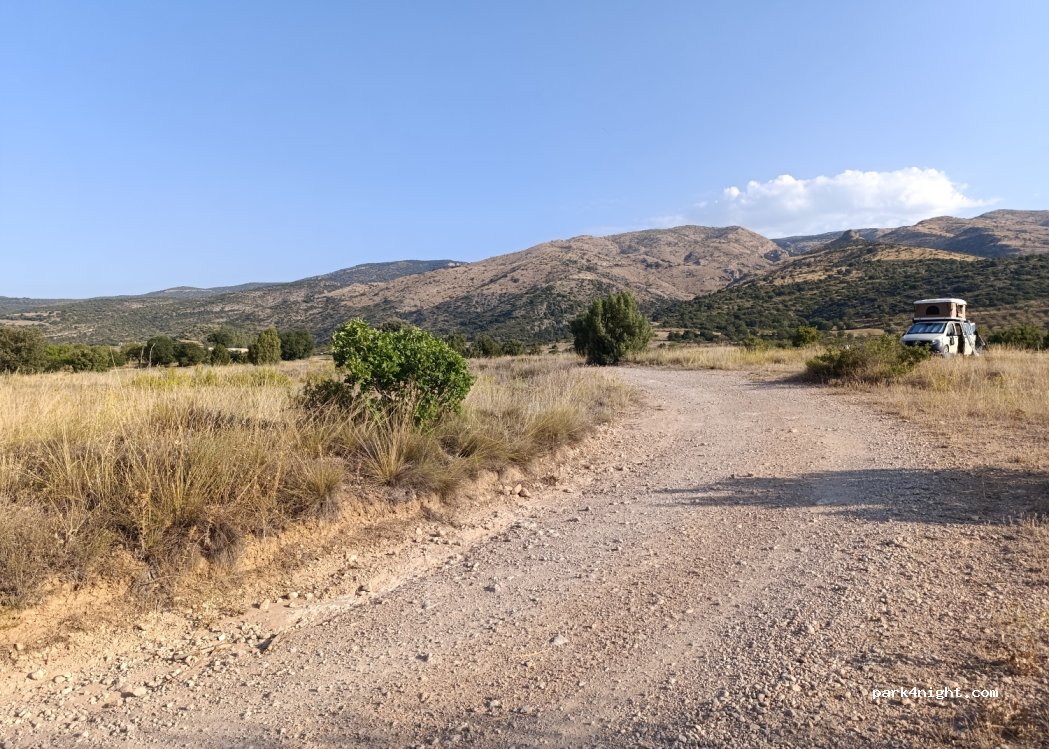 Freier Bereich, in der Nähe eines Hauses. öde Gegend. Sie haben uns nichts erzählt. Toller Platz, unbefestigte Straße, glaube nicht, dass Wohnmobile hochfahren. herrliche Aussichten.