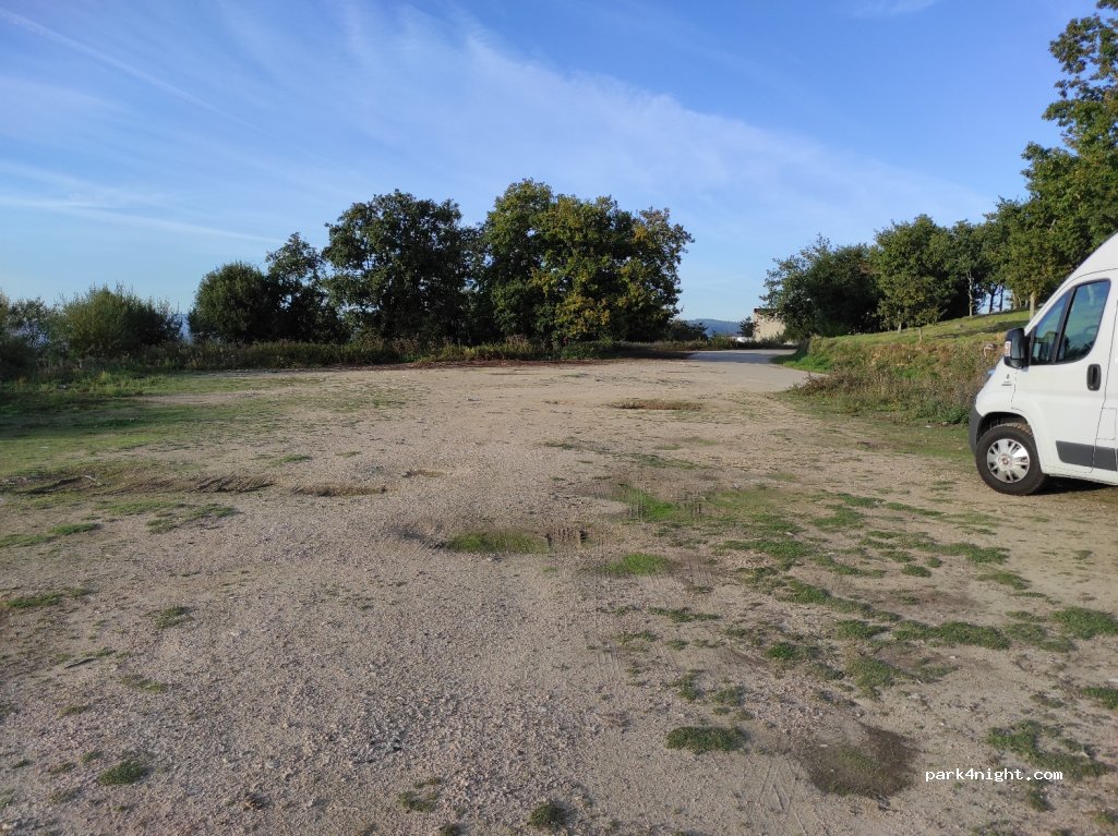une halte pique-nique.le café bar à l air fermé. nous sommes les seuls. il y a des tables et barbecues. c est tranquille. on entend le bruit de la route en fond sonore mais pas gênant. je pense qu il est possible d y dormir.