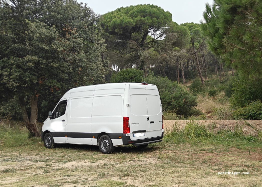 Un sitio muy tranquilo para dormir, cerca del pueblo pero alejado lo justo para no molestar ni que te molesten. La mayoría de los parkings de Begur no están nivelados, este sí. Tiene 3 plazas asfaltadas, el resto es hierba. He de decir que era Navidad y, por tanto, estábamos solos. En verano me imagino que estará lleno.