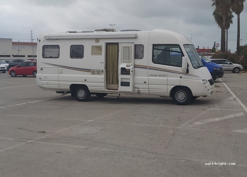 Parking público de la estación de tren. están todos los suelos llenos de cristales. revientan coches... imagínate una autocaravana. Poblado chabolista justo aquí al lado. íbamos a aparcar pero nos vamos. No nos ha gustado nada.. ni para visitar la ciudad...