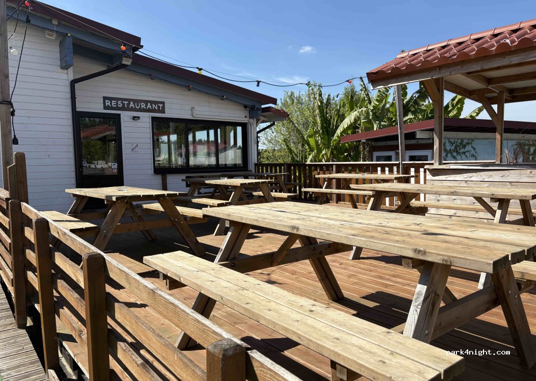 Área muy recomendable, parcelas delimitadas de buen tamaño y con césped. Entrada automática 24h/13€, con agua y luz en cada parcela. Vaciado de grises también en la parcela y baños (no duchas). Con restaurante y pizzería. Entrada a la playa gratis si estás en el área, toboganes 8€ y parque acuático de hinchables a 10€ (pack a 15€), de uso ilimitado. También posibilidad de practicar esquí acuático!