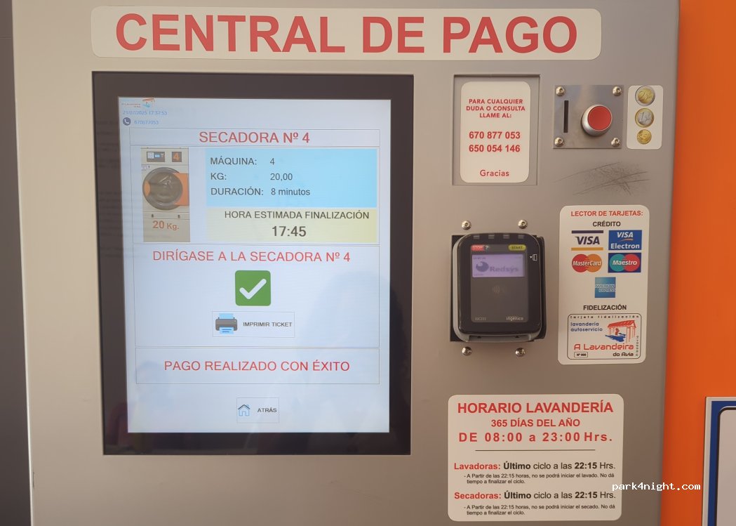 perfecto, se pode pagar con tarjeta y lavado económico y eficiente. Calle con buen aparcamiento. Recomendo