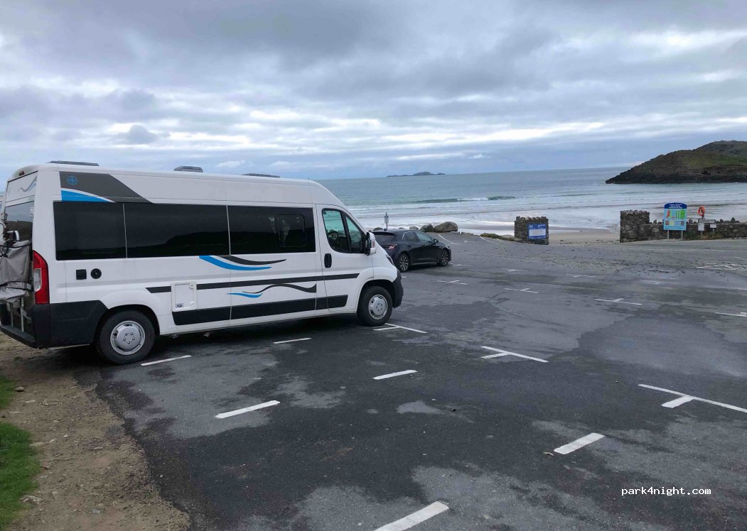 Now £6 but great place to park a long campervan. Wide vehicles may struggle at busy times. We got beachfront(field) spots on all four occasions - directed by the ticket seller. Run by the local council.