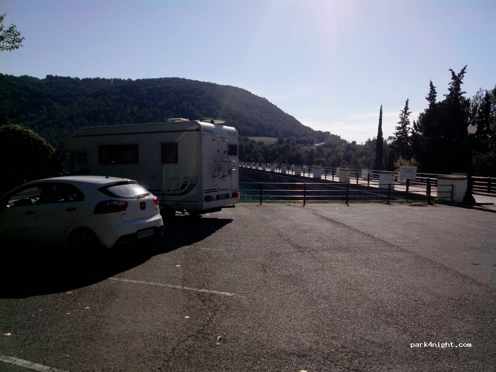 Hemos pasado una noche en el parking de la presa. Muy tranquilo para dormir. Por la mañana pasaron los mossos y no dijeron nada.