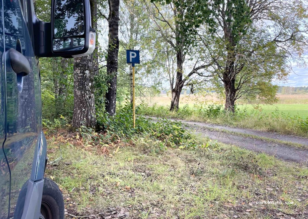 Einer meiner schönsten Plätze in Schweden.Anfahrt über eine kurvenreiche, asphaltierte Straße.Das letzte kleine Stück Schotter.Auch mit 7 m Länge ist wenden möglich. Es gibt nix,kein Picknicktisch,keine Bank kein Mülleimer.Nur Natur mit Eichhörnchen Vögeln und weit entfernt 2Kühen. Es gibt ein Parkplatzschild und kein Verbotsschild.also denke ich,ist übernachten ohne Campingverhalten,erlaubt .