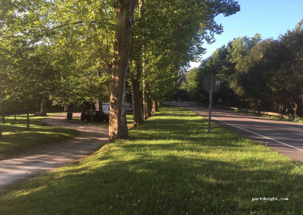 Sitio ideal para aparcar por la mañana, visitar el bosque y comer tranquilamente en el merendero. hay mesas de piedra y barbacoas. para dormir no lo veo por el ruido de la carretera.
