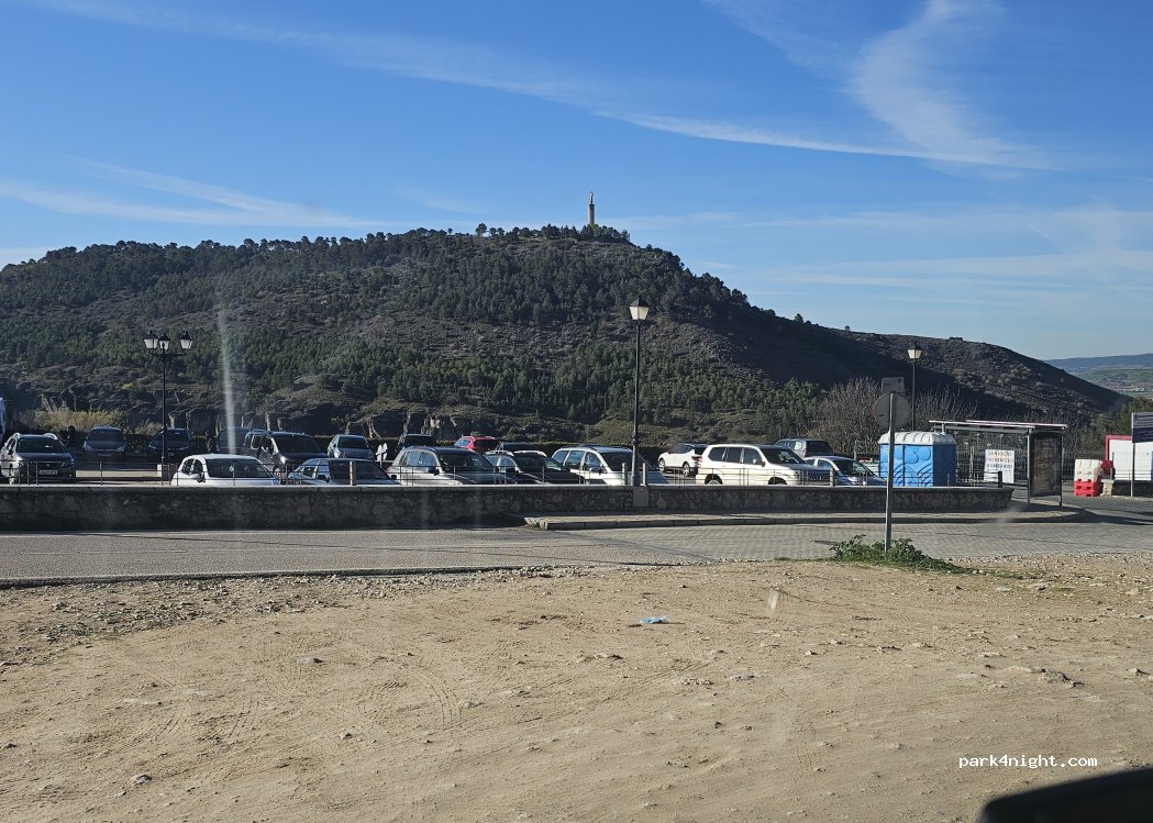 Parking gratuito, cerca del castillo, en la parte más alta de Cuenca. Dormimos una noche de domingo a lunes y sin ruidos. Nosotros accedimos dando el rodeo por el hotel Cueva del Fraile. En fines de semana el Casco Histórico de Cuenca es solo para residentes o para los parkings interiores, en laborables se puede cruzar. La principal pega es que el parking está en cuesta, aunque dormimos bien.