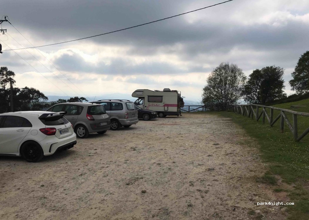 La strada per arrivare è davvero troppo in pendenza! Abbiamo percorso diversi metri in prima marcia e al ritorno i freni in grave difficoltà. La vista è bellissima anche se lo skyline di Gijón è decisamente poca cosa. Area in terra, pochissimi posti per camper al massimo di 6/7 metri. Prato a disposizione con tavoli picnic e belvedere sulla valle. La fatica per arrivare non ne vale la pena.