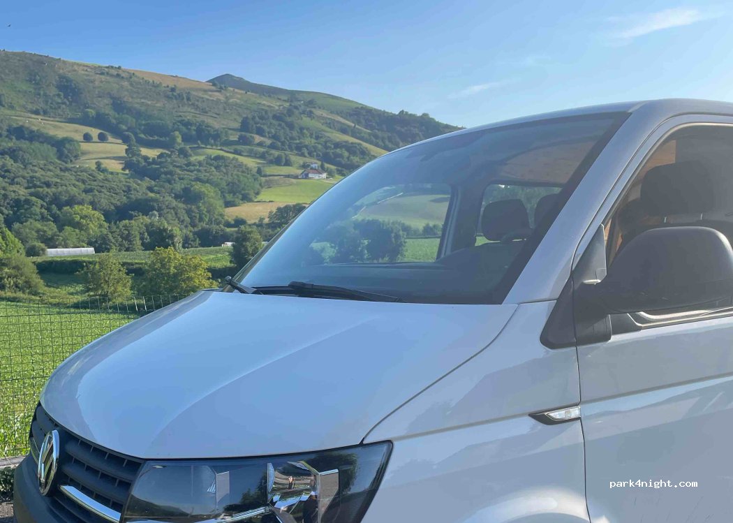Nous y avons passés la nuit à 2 vans. Très calme, belle vue avec les moutons le matin. Barre à 2m. Emplacement plat au fond du parking.