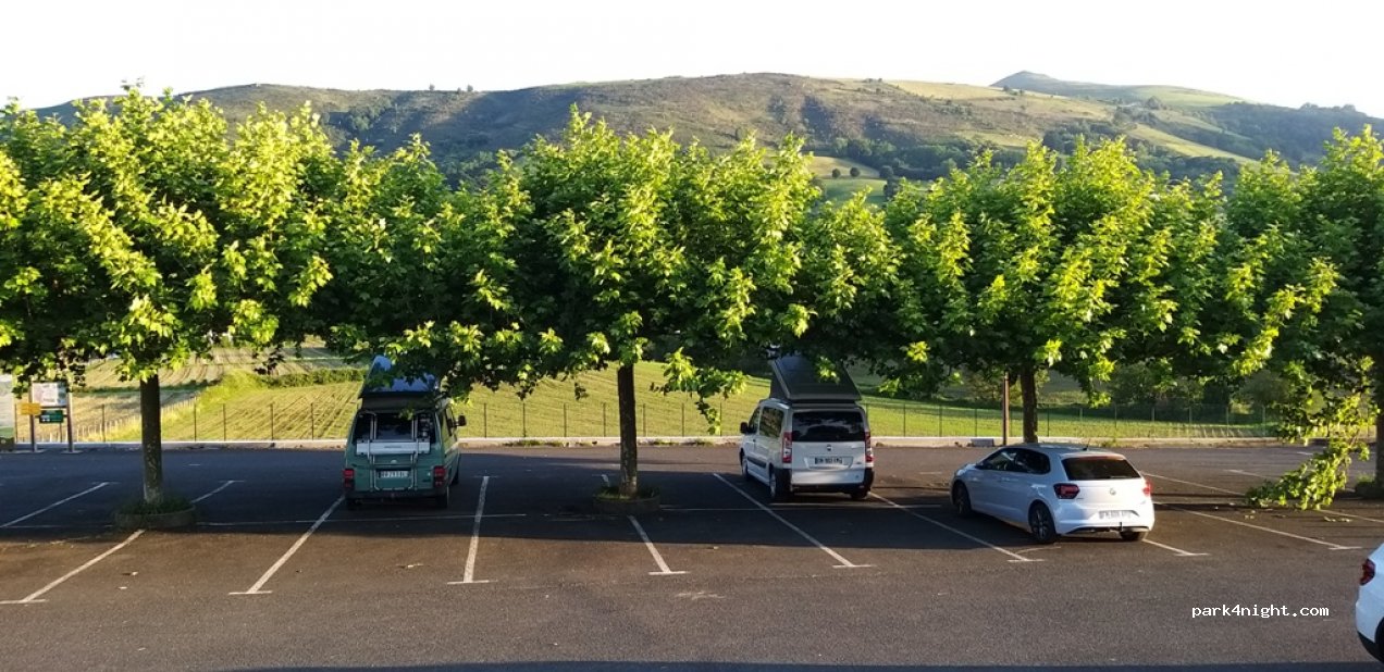 Petit parking avec un peu de passage mais pas bruyant, nuit passée au calme. Hauteur du parking 2m
