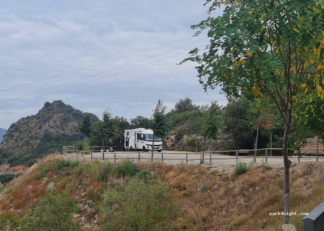 Ground parking at the entrance of the village of La Foradada. Quite flat and with beautiful views. No services except for rubbish bins. Quiet and perfect to spend the night. Charming village and walk to discover curious sculptures.