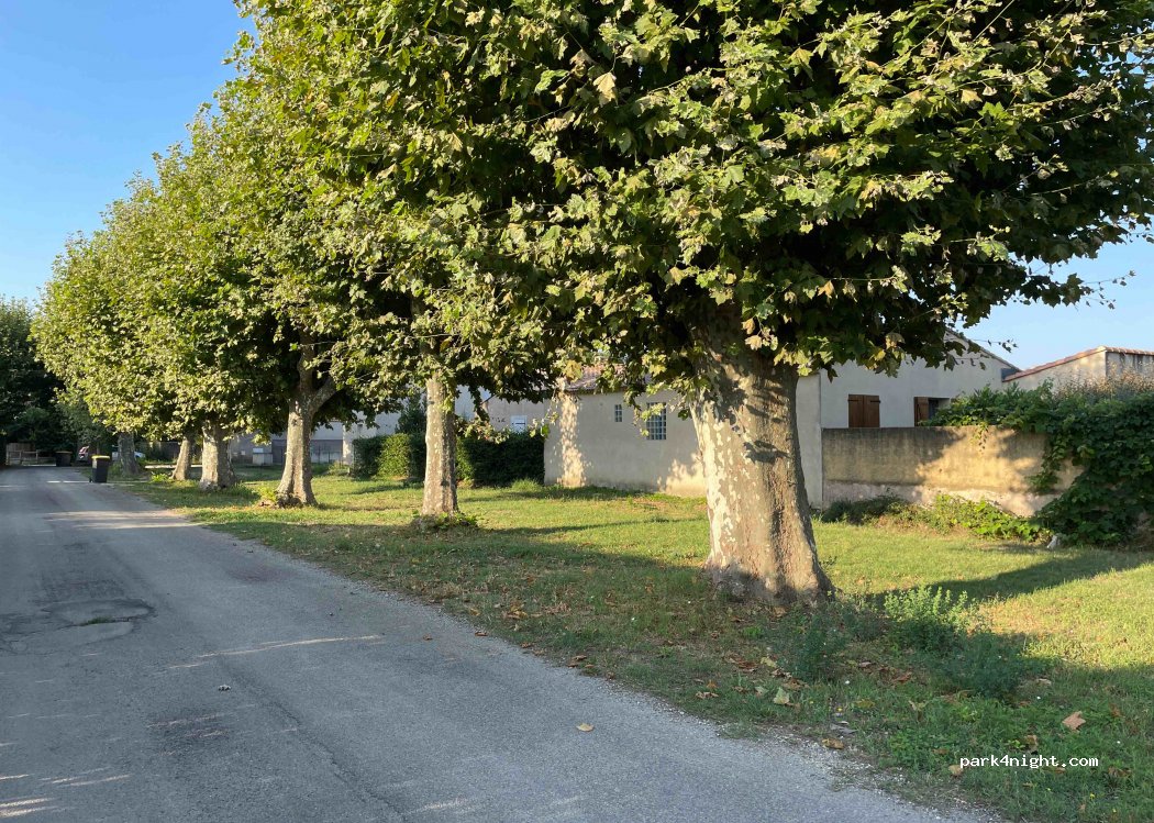 Shaded esplanade parallel to a very quiet street. Possibility to spend the day and night there. Very calm night. Departure of the greenways towards the Pont du Gard at 100m