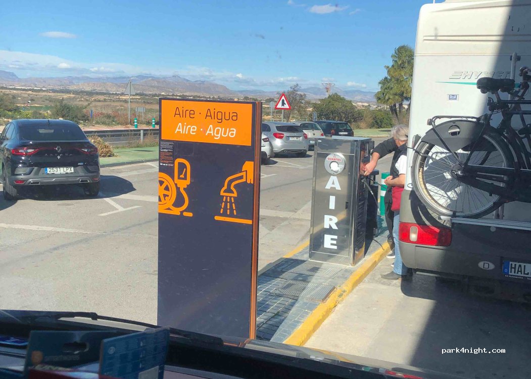 Repsol Tankstelle mit Gasflaschentausch, Ort zum Wasser auffüllen (kostenlos) neben dem Luftdruckprüfer an der Seite bei den Gasflaschen. Wir haben nur Wasser gefüllt, da wir einen Tag vorher tanken waren. Einfach hinfahren und auffüllen - niemand fragt oder verbietet es. Wasser läuft gut aus Zapfpistole. Ob es Trinkwasser ist, ist fraglich aber zum Kochen, Abwaschen und Duschen super!