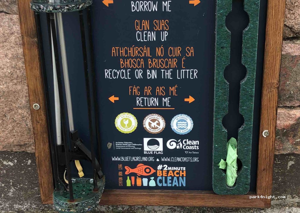 Beautiful spot. I parked up for one night. 3-4 other campers there so felt safe. Toilets during summer are open during day. Beautiful Beach for swimming - be safe! - Litter pickers and bags for loan at toilets - to do a beach cleanup - Leave no trace.