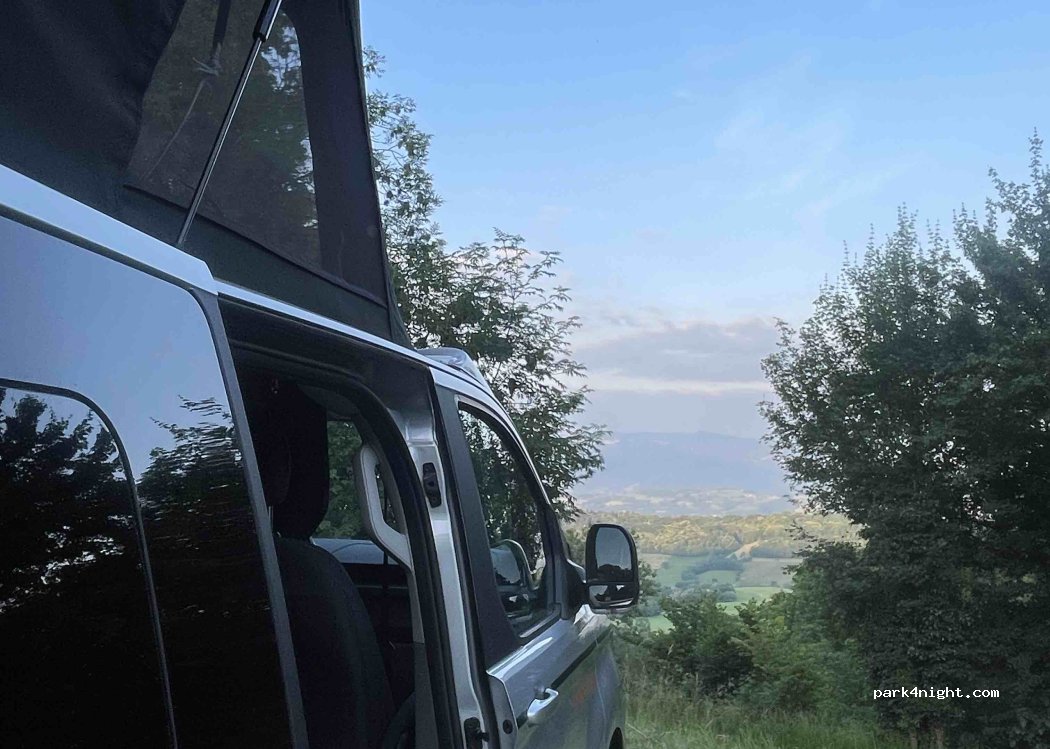 Parking stabilisé, très calme, malgré la proximité de la route...