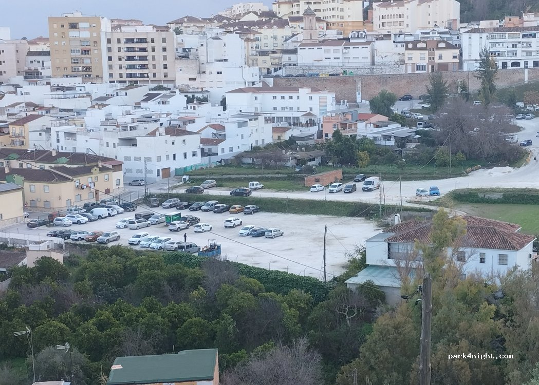 Parking plein peut-être du à la fête foraine du 1er mai sur le parking 1 calle Clara Campoamor. Sol en calcaire dès qu'un véhicule s'y engage, nuages de poussière.