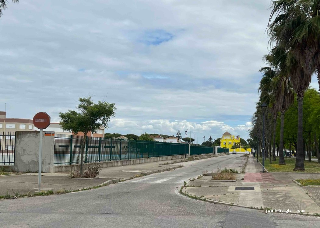 Goede parkeergelegenheid in Valdelagrana, in een rustige en brede laan. Hier gaan we onopgemerkt verder dan in de strandparkeertassen. Het is beter om hier te parkeren, het is 200 meter van het strand, maar de plaats is erg rustig en ruim. school, niemand wordt gestoord hier geparkeerd. In de omliggende straten is er ook AC geparkeerd. Zoals ik al zei, beter hier dan in de eerste regel onopgemerkt blijven.