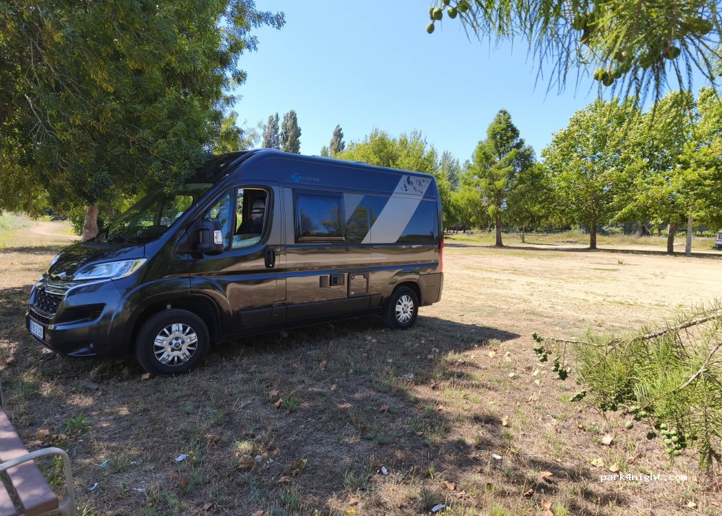 Lugar muy tranquilo para pasar la noche, no tiene contenedores de basura ni papeleras. A la orilla de un río por lo que a última hora haya bastantes mosquitos. Terreno bastante igualado.