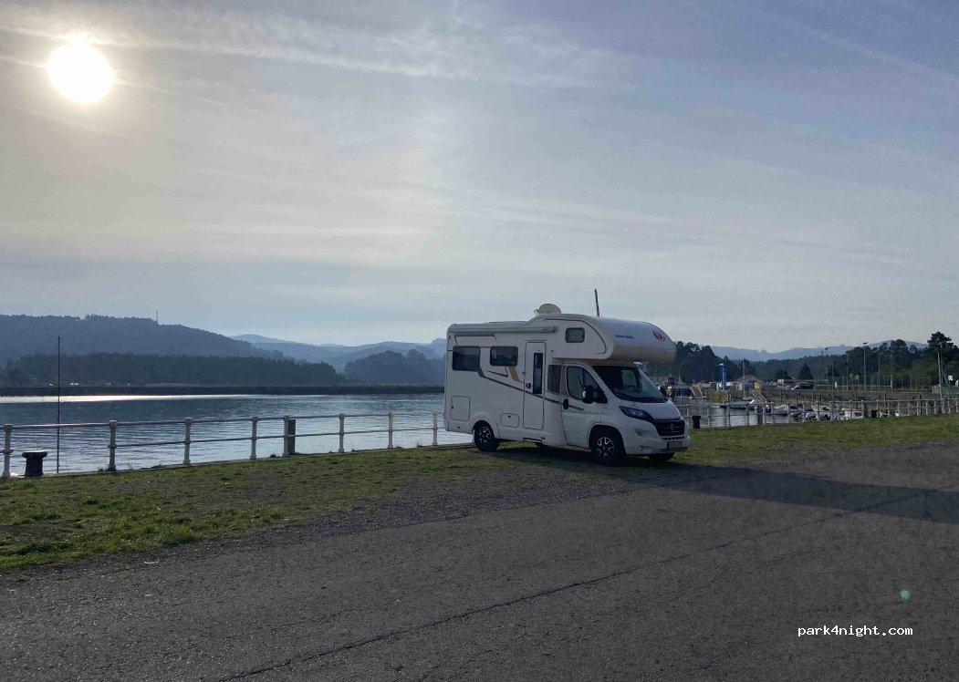 Pasamos la noche muy tranquila, junto al pueblo y los bares pero sin ruido, con vistas a la ría junto a una grúa de los años 30. El rumor de los barcos balanceándose y poca luz que moleste para dormir. El pueblo bonito, amable y con buena gente. Cuando pasemos por aquí pararemos seguro.