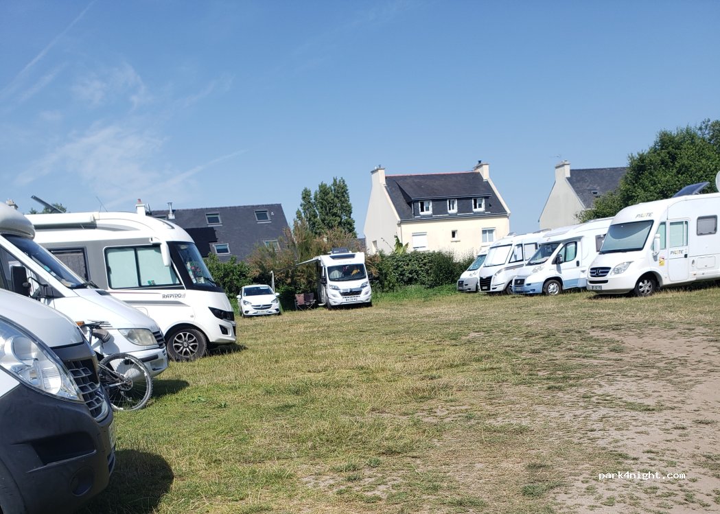 Motorhome parking, 48h. No garbage service, about 20 places on grass, muddy in case of rain. Close to the sea (Mousterlin peak) and GR 34 access.