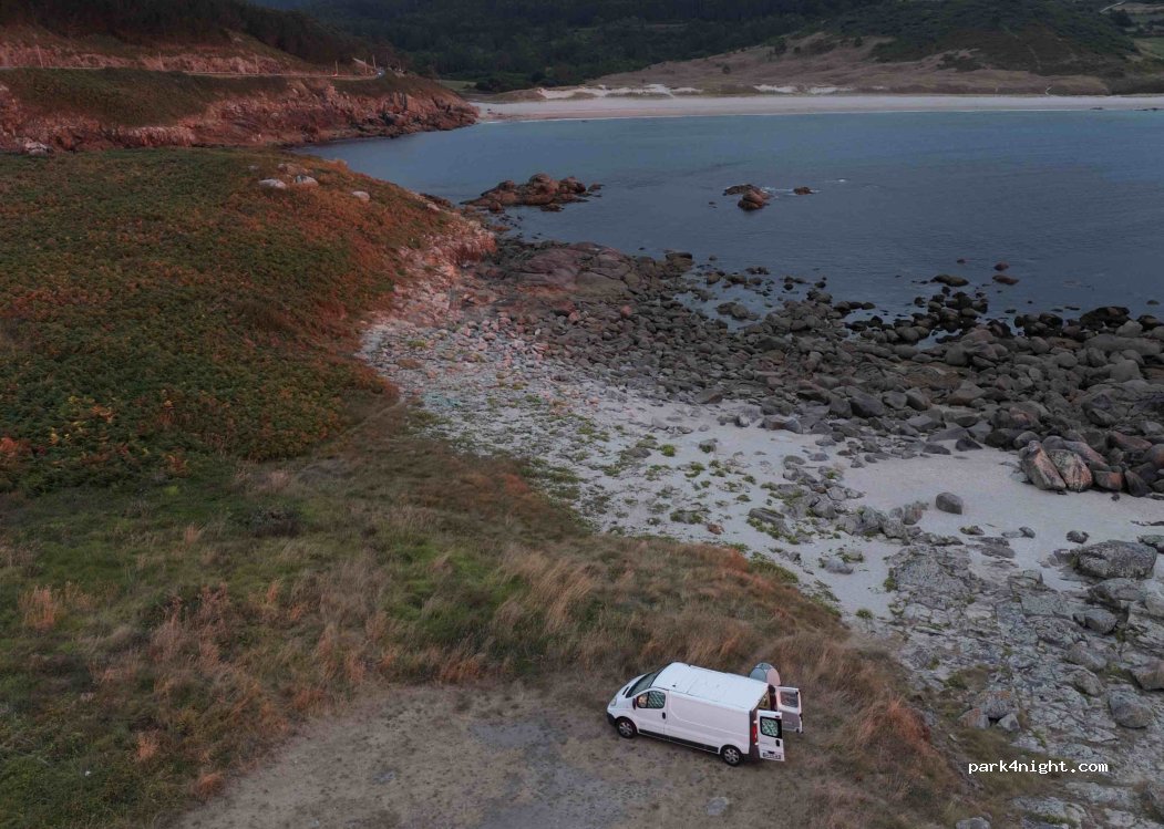 Uno degli spot più belli nella stupenda Costa de Morte! abbiamo trascorso qui 3 giorni stupendi ed eravamo praticamente da soli, luogo molto tranquillo vicino a un campo da calcio, accesso diretto al mare in baia protetta dalle onde. Consigliato!